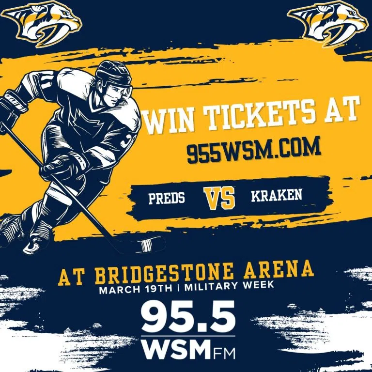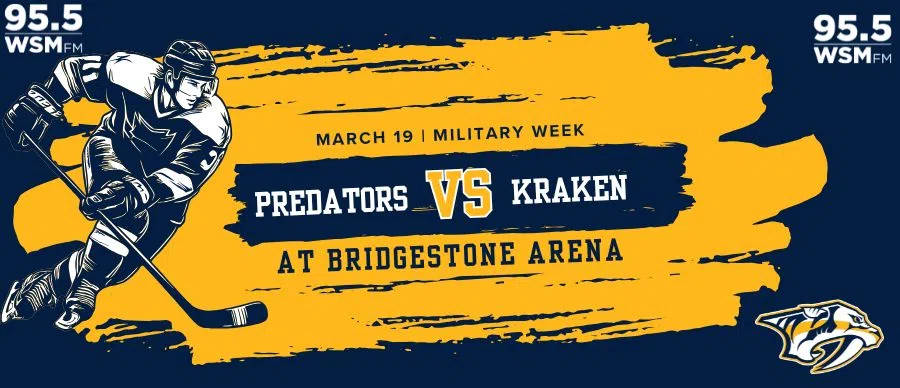 Smashville, this is a night of honor and pride. The Nashville Predators take on the Seattle Kraken on March 19th as part of Military Week, and 95.5 WSM wants to send you to Bridgestone Arena to be part of it.
