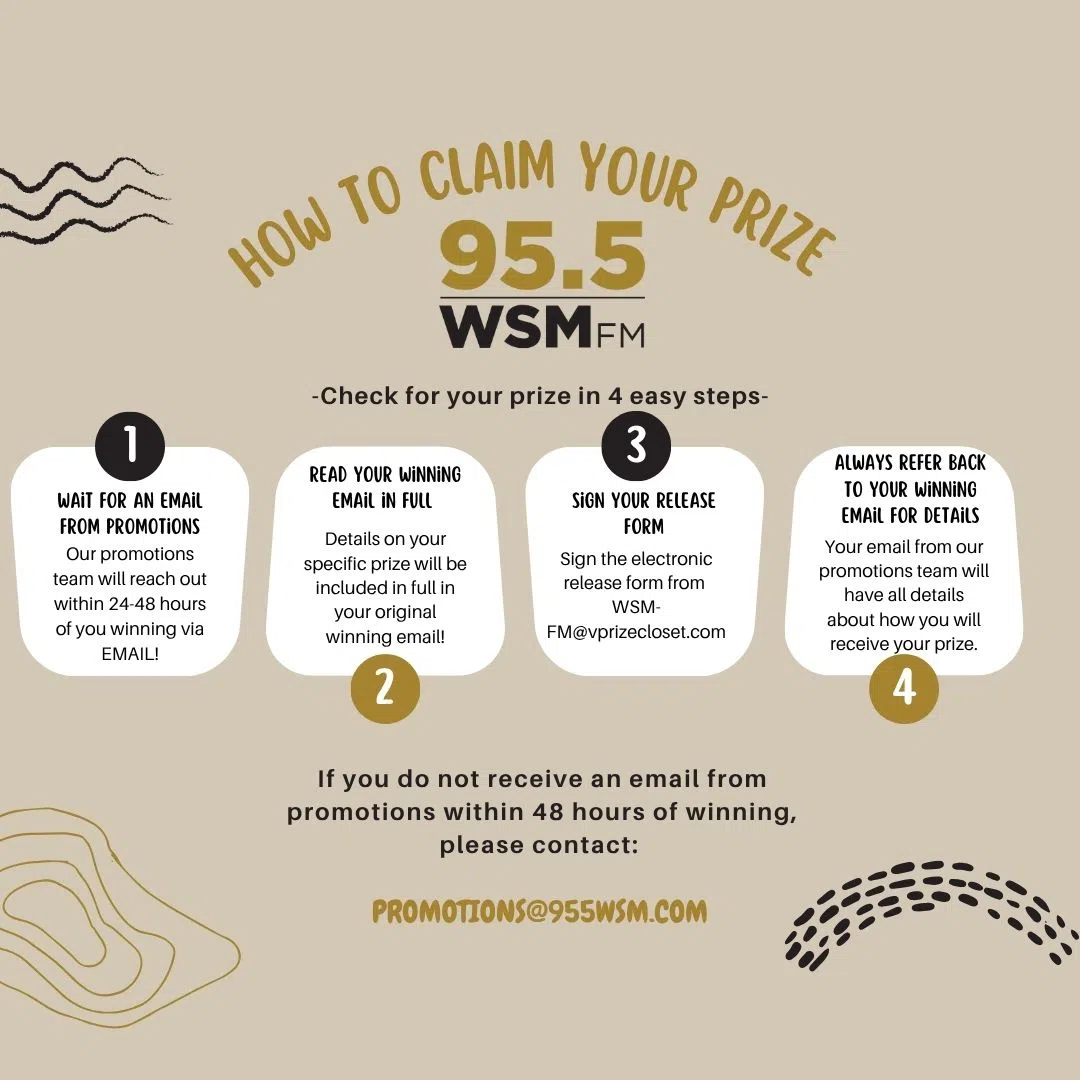 We're so happy to hear that you have won a prize from 95.5 WSM! We know the prize-winning process can be difficult to understand if you are not used to it, so we've put together a guideline to help yo...