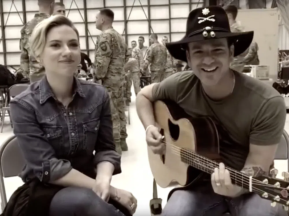Watch Craig Campbell and Actress Scarlett Johansson Sing “These Boots Are Made For Walkin’” During USO Tour in Afghanistan